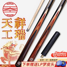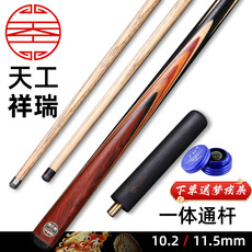 正品天工祥瑞台球杆小头中式八球免漆手工斯诺克黑八桌球一体通杆